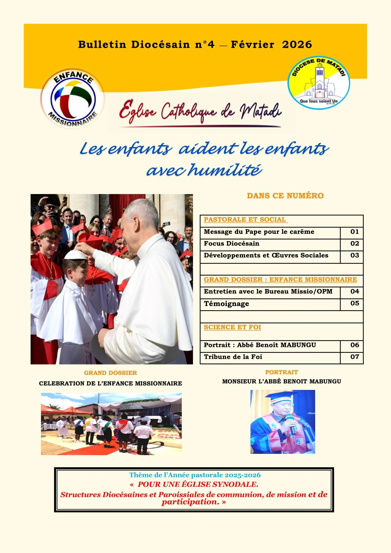 Le diocèse de Matadi projette la construction d’un Centre pastoral diocésain à Matadi (Safari), afin de disposer d’un lieu destiné à la coordination, à la formation et à l’organisation des activités pastorales. Pour financer ce projet estimé à 283 793 USD, Mgr André-Giraud PINDI MWANZA MAYALA a relancé la contribution spéciale « Betu Tungulula Diocèse ya beto », invitant chaque fidèle catholique et toute personne de bonne volonté à soutenir cette œuvre au service de l’Église diocésaine.
