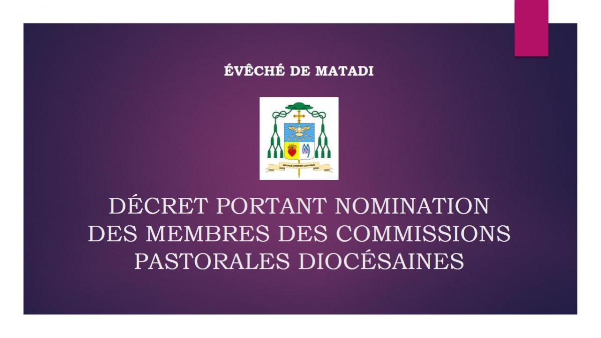 DECRET PORTANT NOMINATION DES MEMBRES DES COMMISSIONS PASTORALES DIOCESAINES